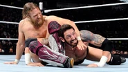 With the tag team division wide open and The Showcase of Immortals rapidly approaching, four of WWE's top tag teams each took turns showcasing their skills in an action-packed Eight-Man Tag Team Match. The two sides — featuring Tyson Kidd, Cesaro & Los Matadores against Kofi Kingston, Xavier Woods & The Usos — had issues staying on the same page as the competitive nature of each duo ended up taking precedent over teamwork.