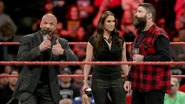 Of course, not only did that sit badly with Stephanie, but it also sat badly with Triple H, who emerged from behind the curtain to threaten the livelihood of both Foley and his children. The Game demanded Foley vacate the ring, but The Hardcore Legend replied by jamming Mr. Socko down his gullet. Stephanie low-blowed Foley to stop the attack, but before The Game could finish off the embattled GM, Seth Freakin’ Rollins came to the rescue.