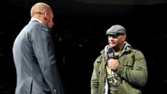 Poised to battle Randy Orton and either Daniel Bryan or Triple H for the WWE World Heavyweight Championship on The Grandest Stage of Them All, Batista kicked off SmackDown by questioning the WWE Universe's hostile reaction to his return to WWE. The Animal characterized these boos from WWE fans as a “personal slap in the face” – not unlike the smack Stephanie McMahon delivered to him on Raw. But, before the 2014 Royal Rumble winner could expand on his feelings, Triple H joined the conversation.