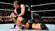 Following a calculated ambush by Kane and numerous tag teams one week ago, Dean Ambrose & Seth Rollins continued their road to retribution right through 3MB's Jinder Mahal & Drew McIntyre. Moments after Rollins disposed of Mahal with a high-flying assault outside the ring, the United States Champion delivered "Dirty Deeds" for the pin fall.