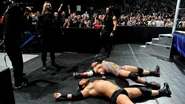 As WWE COO Triple H watched from backstage, Sheamus and Batista engaged in a hard-hitting clash that pushed both competitors to the limit. After the battle spread outside the ring, The Animal unleashed his fury on The Celtic Warrior in the form of two vicious chair blasts – before hurling The Celtic Warrior in to the steel ring post. Although Sheamus won the match via disqualification, the fiery Irishman was left in shambles after The Animal's outburst.