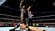 - The Shield (Dean Ambrose & Seth Rollins) (w/ Roman Reigns) defeated 3MB (Drew McIntyre & Jinder Mahal) (3:40)