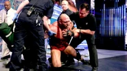 Trapping the “Human Wrecking Ball,” the enraged Superstar proceeded to choke his WrestleMania adversary, before the weights eventually broke loose and the bar went flying. Somehow, Booker was able to order Henry to back off, but the damage to Ryback had clearly been done.
