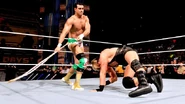 The voice of an emerging Rodriguez finally ended the abuse. As the injured announcer distracted Swagger, World Heavyweight Champion Alberto Del Rio came at his WrestleMania No. 1 contender from behind, locking him into the Cross Armbreaker. When Zeb Colter got involved, Rodriguez clocked him with his crutch before throwing it to his friend. Del Rio nearly took Swagger’s head off before the scrambling competitor could escape.