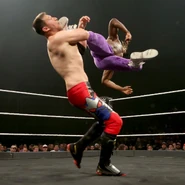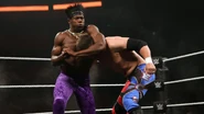 Decidedly flamboyant in garb and posture, the captivating Superstar from Washington, D.C., proved to be a multifaceted threat right off the bat. Between verbally berating Anthony and clubbing him with punches, The Velveteen Dream broke out silky-smooth offense, including a dropkick and a top-rope elbow drop that finished off Anthony with the seriousness of a stake through the heart.