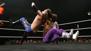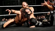 The double-tough Texan mouthed off to McIntyre and immediately paid for it as the former Chosen One booted him square in the face. Still, Blake wouldn't go down easily, taking McIntyre off his feet with a big lariat and using submission holds, including a double wristlock and a cross armbreaker, to try to ground the 6-foot-5 Scotsman.