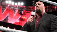Backstage, Eve told Big Show that John Laurinaitis is letting him pick his opponent for tonight's Raw SuperShow. Listening in to the conversation, Alex Riley then tried to tell The World's Largest Athlete that he's always admired him and didn't think it was right that the General Manager fired him. Big Show responded by viciously slamming Riley's head into the wall – a glimpse of the utter chaos to come from the mammoth Superstar.