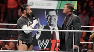 Flanked by Eve and David Otunga, General Manager John Laurinaitis made a few announcements, including that the match between John Cena and Big Show at No Way Out will now take place in a steel cage, and that Brodus will indeed face Big Show on tonight's Raw SuperShow. The GM then unveiled a fake cover of the "WWE '13" video game, with none other than "Mr. Excitement" smiling from ear to ear on the front.
