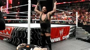 Following the exhausting battle, Kane snuck up on Bryan, drove a steel chair into his back and chokeslammed him onto it, getting payback for Bryan's relentless assault on last week's SmackDown. Kane prepared to go after Punk next, but AJ came to The Straight Edge Superstar's rescue and slid him a steel chair so he could defend himself. Punk laid into The Big Red Machine with blow after blow of the steel chair as AJ watched and smiled. Perhaps having AJ as his adoring fan has its benefits after all.