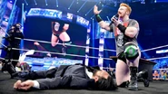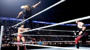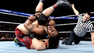 Eager to make up for her Monday mistake, AJ engaged Del Rio outside the ring while the referee was distracted, shaking things up enough for Langston to hurl the Mexican Superstar into the unforgiving steel post. Moments later, Big E executed the “Big Ending” on Del Rio for the three-count, evening the recent matches between them at two wins apiece.