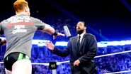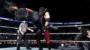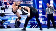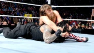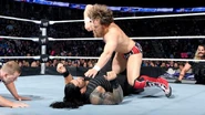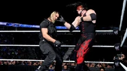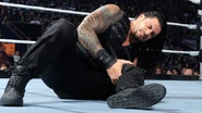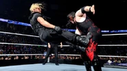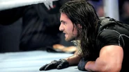 Moments after Kane's huge win, Daniel Bryan took on Roman Reigns. In the height of the action, the former World Champion trapped his opponent in the “No!” Lock and appeared as if he might score the second triumph of the night over the “Hounds of Justice.”