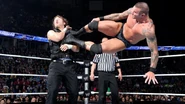 In the final moments of battle, a distraction by Roman Reigns paved the way for Rollins to hit The Big Red Monster with a fierce kick to the head. However, when Rollins attempted to follow up his attack from the top rope, Daniel Bryan took advantage of the distracted referee to throw his partner's unsuspecting opponent to the canvas. The Devil's Favorite Demon then hit the chokeslam for the victory.