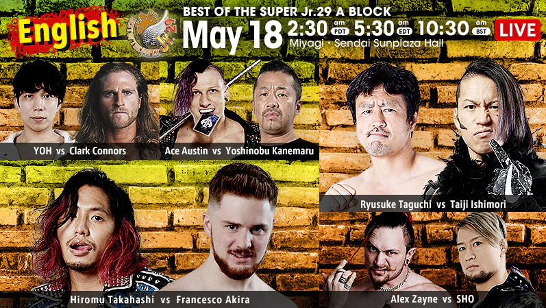 - Alex Zayne [4] defeated SHO [0] in a Best Of The Super Junior 29 Block A Match (12:01)