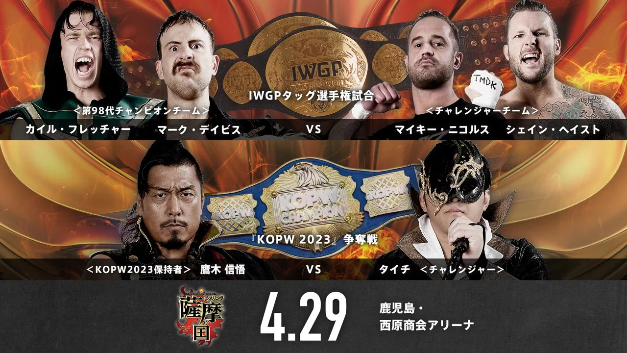 NJPW Wrestling Satsuma no Kuni 2023 was a professional wrestling event promoted by New Japan Pro Wrestling (NJPW). The event took place on April 29, 2023 in Kagoshima, Japan at the Kagoshima Arena. It was broadcast on NJPW World.