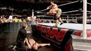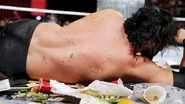 With various white-collar weapons strewn across the ring, Ziggler – sporting both a N.Y. Islanders jersey and a Zack Ryder shirt – and Sandow picked up right where they left off on Broadway. Showing true contempt for stipulation (he Elbow of Disdain-ed said Islanders jersey) Sandow picked up steam when he clocked Dolph with a microphone. Ziggler countered with a spew from a fire extinguisher, though Sandow finally sent him to the showers by shattering an oar over Dolph's back, planting him moments later with “You’re Welcome” on top of a garbage can.