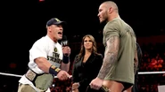 There can only be one Face of WWE. And although he remains WWE Champion, the odds of Randy Orton reclaiming that symbolic status have just been cut in two by an unlikely challenger: World Heavyweight Champion John Cena. In Raw's opening moments, The Champ took vocal exception to Orton's post-victory posturing and offered The Apex Predator a chance to prove his worth in a match that places both World Championships on the line and would name a true Face of WWE. It was a jaw-dropper of a challenge, but the real surprise came when The Authority accepted the Cenation leader's proposal and decreed the contest would take place with the most unpredictable of stipulations: Tables, Ladders & Chairs.