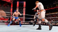 Two consecutive defeats via Twin Magic apparently didn't sit well with The Miz, who left Damien Mizdow on the sidelines and went solo against Jimmy Uso on Raw. For all Mizdow's folk-hero momentum, that turned out to be the best move the former Intercontinental Champion has made in weeks, as the crossover sensation reversed his run of bad fortune with a lucky bit of irony. After a dive to the outside flattened Miz, The Usos turned their attention to the ever-present Mizdow long enough for Miz to capitalize with a knee to Jimmy's face and, moments later, a Skull-Crushing Finale for the win.
