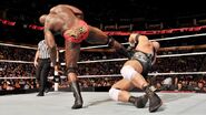 It was only when Rusev went to the ground that Sheamus was able to create separation and mount one final offensive burst, countering the Accolade into White Noise and setting up for a Brogue Kick. Sheamus’ signature kick not only missed his mark, but it also left Sheamus vulnerable for two kicks to the head and a second Accolade attempt. Sheamus kept his perfect no-tapout record intact, though his loss of consciousness handed Rusev the stars-and-stripes title all the same.