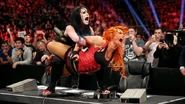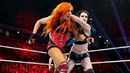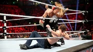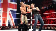 She's Maiden Ireland, all right, but Becky Lynch does just fine in England as well. The Divas Revolutionary defeated her traitorous comrade-in-arms Paige on the Anti-Diva's home turf, though The Lass Kicker certainly paid the price for not just humiliating Charlotte's No. 1 contender, but surprising her. That's because Paige was firmly in control during the duration of their bout, putting the boots to the “B” and attempting a series of hands-on-the-tights rollups, forcing Becky to turn it around and get a “P” — pin, that is — with a hand of Paige's own trunks ... which led to a PTO atop the commentary table as payback. Hey, a “W” is a “W.”