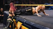 LeRae rattled The Queen of Spades in the early going, knocking her silly with a thunderous enziguri and a springboard plancha. Baszler found her way back into the match with the same viciousness that has made her such a dominant champion, stomping LeRae's left elbow against the steel steps.