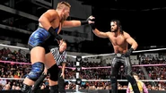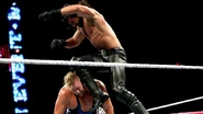 With his match with Dean Ambrose approaching this Sunday at Hell in a Cell, Mr. Money in the Bank Seth Rollins battled the formidable 270-pound Jack Swagger. Rollins almost fell in defeat to a Swagger Bomb followed by a Patriot Lock. But the self-proclaimed "undisputed future of WWE" made it to the ropes to save himself. Then — distracted by Rollins' security staff lurking at ringside — The Real American fell victim to a flying knee to the head and a Curb Stomp.