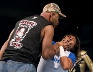 The Coach decided to get into the Halloween spirit and came to RAW dressed up as Stone Cold Coachman. Complete with a Stone Cold T-shirt, jean shorts, two black knee braces and a couple of beers, he once again called out Stone Cold. He also said that he would lay his cards out on the table and brought out his backup – Goldust. After the bizarre one came out, Mr. McMahon informed Coach that Stone Cold had an accident and won't be at RAW or at Taboo Tuesday the following evening. McMahon said that since Coach is the No. 1 announcer on RAW, his new opponent for Taboo Tuesday would be SmackDown's No. 1 announcer – Funaki. Funaki ran to the ring, but Goldust made short work of him. Coach told McMahon that he can handle anyone from the SmackDown roster, so with that, McMahon laid out an open challenge to anyone on the SmackDown roster. It didn't take long for someone to answer, as the World Heavyweight Champion Batista answered the challenge. Batista laid out Goldust with a spinebuster, but then he was blindsided by another surprise backup plan in Vader. Vader held Batista while Coach laid in an insulting slap to the face before leaving the ring. So, at Taboo Tuesday, it will be Jonathan Coachman, with Vader and Goldust by his side, taking on World Heavyweight Champion Batista in a verbal debate, an arm wrestling contest or a Street Fight.