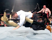 Later in the evening Triple H faced off against the massive Viscera. Despite giving up a couple hundred pounds to Big Vis, Triple H made short work of the world's largest love machine and put him away with the Pedigree. The Game showed his ruthlessness after the match when he knocked Viscera over the railing with the steel ring steps.
