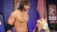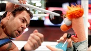 We’re not sure if it was the furry body or the strange accent, but something gave Santino Marella a serious kinship with The Muppets. With Kermit the Frog and Miss Piggy watching from the entrance ramp and Animal sitting in as special guest timekeeper, the Italian Superstar scored a big victory over The All-American American when Beaker slipped Santino a mysterious potion, which The Milan Miracle used to blind Swagger and grab the win.