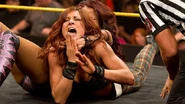 While Sasha Banks is focused completely on Charlotte and the NXT Women's Title, Becky Lynch is trying to move up the ladder and work toward a title opportunity of her own. Lynch took advantage of Banks’ mind being elsewhere, but the Irish Diva's attacks only infuriated The Boss. An enraged Sasha took control of the bout and earned a submission victory with the Bank Statement.