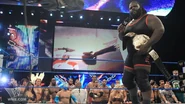 No longer under Jinder Mahal's control, The Great Khali relished in an opportunity to face Mahal within the squared circle. With a massive display of force, Khali obliterated his former manipulator with a Punjabi Plunge.