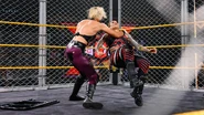 Roderick Strong's Undisputed ERA ally Bobby Fish proved to be his ace in the hole, pulling Strong out of the way of Killian Dain's potential top-rope attack. Dain clocked Fish, but it left him vulnerable to a blistering jumping knee strike by Strong to suffer defeat. The Undisputed ERA looked to continue the onslaught until Drake Maverick saved Dain with a lead pipe in hand. Maverick offered Dain a handshake, only to catch a giant haymaker to the face. As if a Steel Cage Match wouldn't be brutal enough, Mercedes Martinez introduced a Kendo stick and several steel chairs into the ring before the match even began. Rhea Ripley seized the upper hand against her rival when she caught her by surprise before she entered the ring, also adding a table to the plethora of instruments available. But Martinez was the first to dish out significant punishment, powerslamming Ripley on a steel chair and later delivering a German suplex from the top rope.
