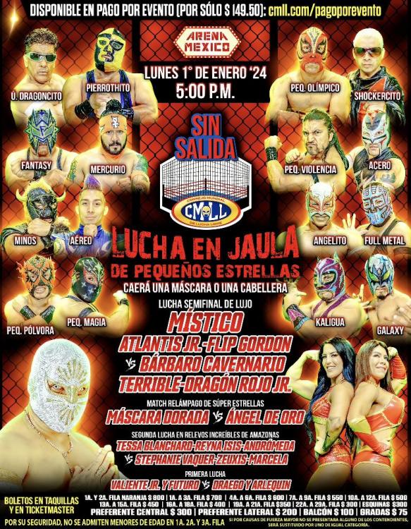 - Acero and Aereo and Angelito and Fantasy and Full Metal and Galaxy and Kaligua and Mercurio and Minos and Pequeno Magia and Pequeño Olímpico and Pequeno Polvora and Pequeño Violencia and Pierrothito and Último Dragóncito defeated Shockercito in a Lucha de Apuesta Sixteen Man Hair vs. Mask Steel Cage match