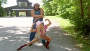 The march to Lana and Rusev's two weddings has begun, and The Ravishing Russian is all about picking a theme for the wedding. This one actually gets resolved fairly quickly, as Rusev consents to a farm-set photo shoot for their invitations where he's in overalls and she's in Daisy Dukes. The Super Athlete only seems to care at first that the photographer gets his right bicep (his good one) in the shot, but his gesture of framing one of the photos leaves Lana with butterflies in her stomach. Awww.
