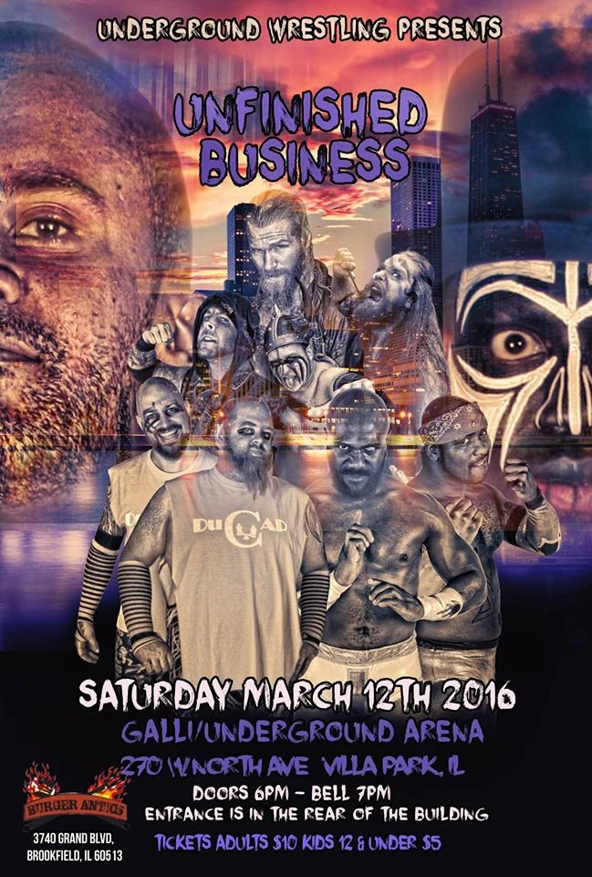 UGW Unfinished Business 2016 was a professional wrestling event produced by Freelance Underground (FU) promotion, which took place on March 12, 2016] at the Galli Underground Arena in Villa Park, Illinois.