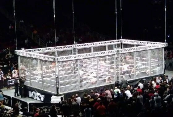 Although the match had two rings and a cage covering both rings, the cage did not have a roof.
